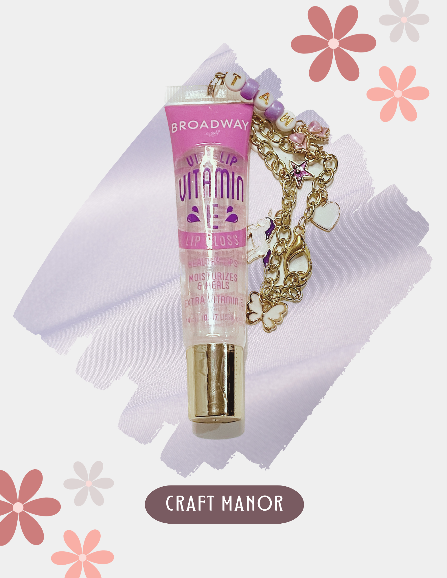 Included: One lotion and one lip gloss with personalized resin keychains and charms